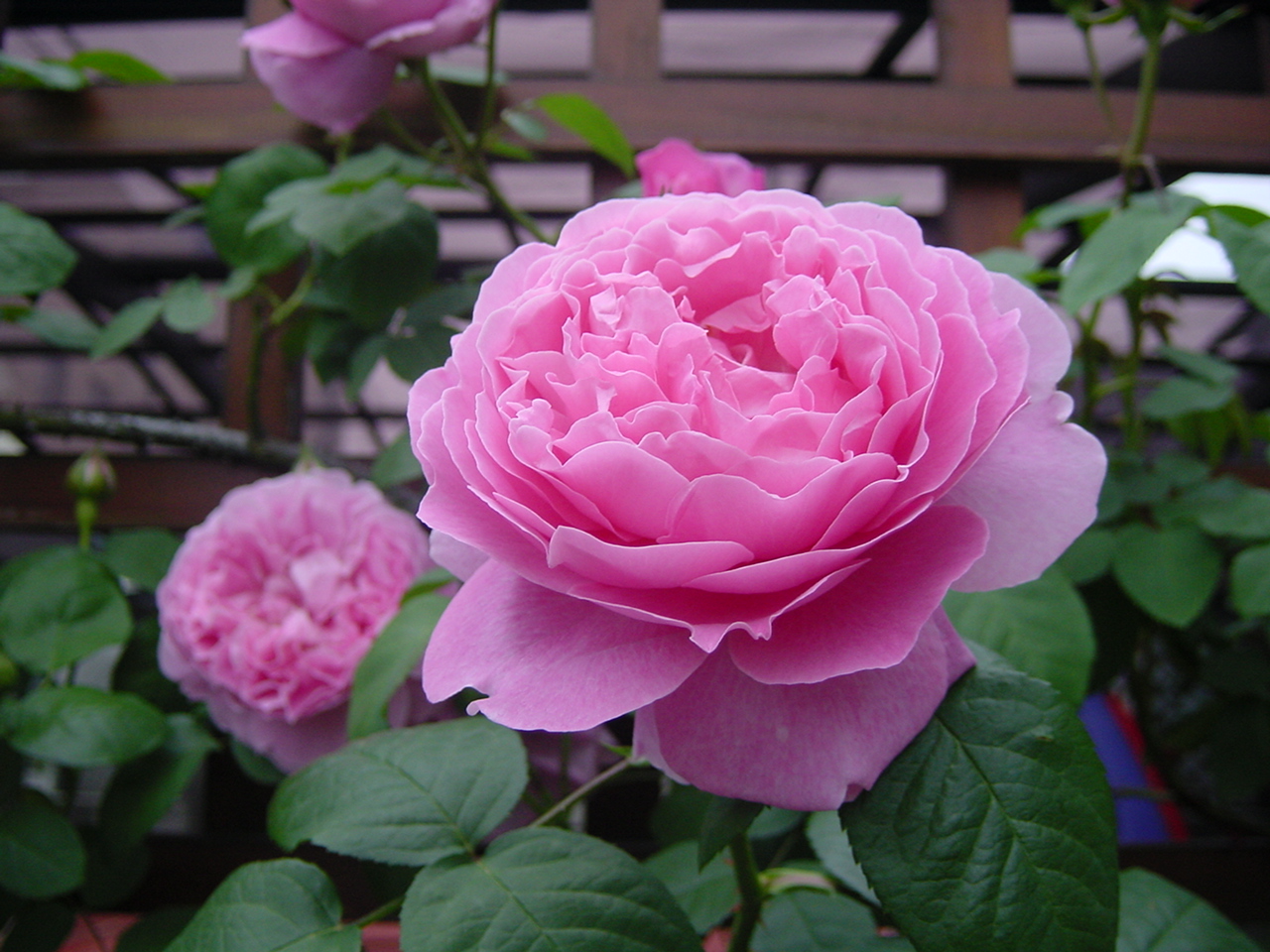 毎年、なぜかきっちり5月3日にメアリーローズの一番花が咲きます。 今年も10本ほどあるバラの花のうちでは一番乗りでした。