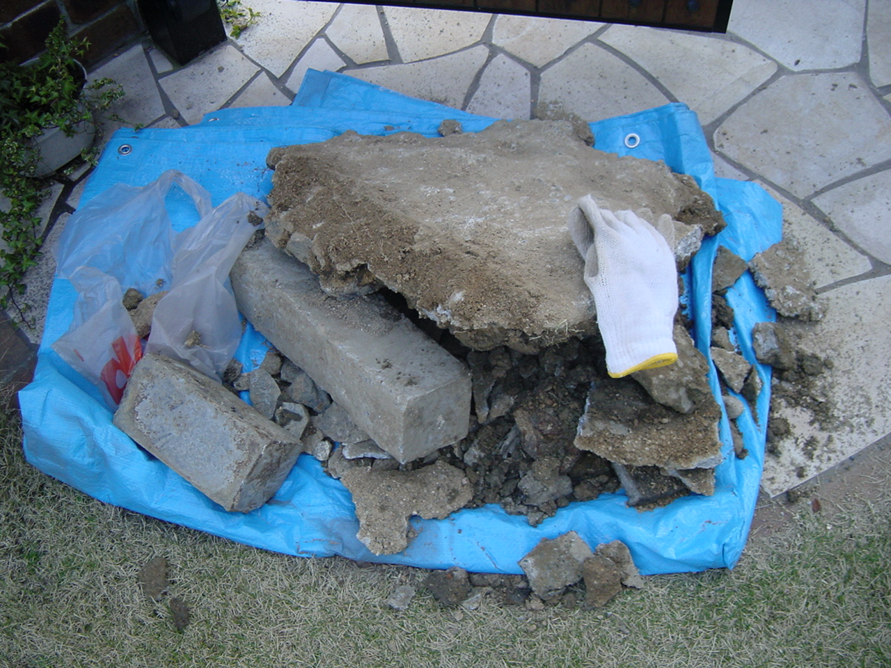 だいたい20cmぐらい掘り返したところでしょうか、小さいガラはもとより、大きなコンクリートの